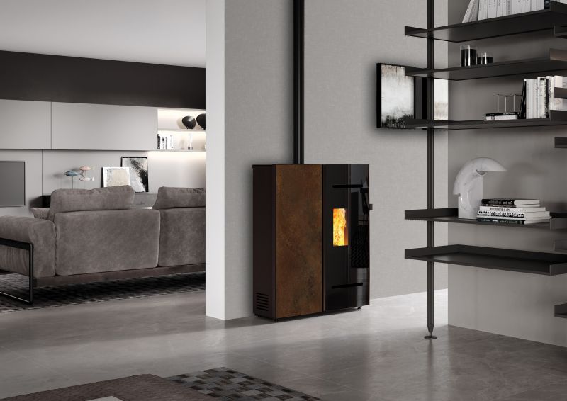 The pellet stove ALARE is slim, ermetic with convection air and SMART ventilation which make the stove incredibly silent. Available in corten stoneware.